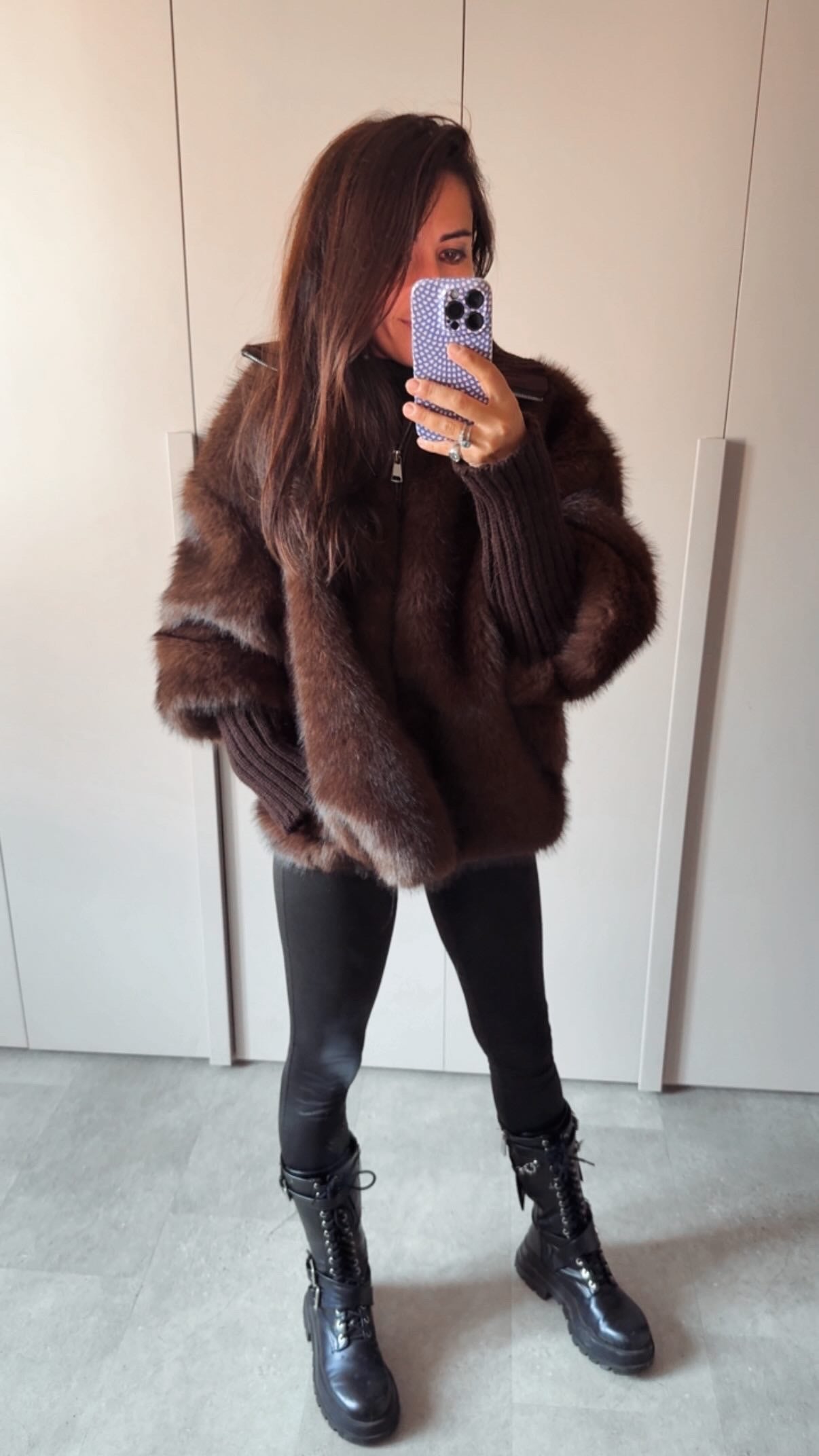 giacca in eco pelliccia con maniche e collo in tessuto!